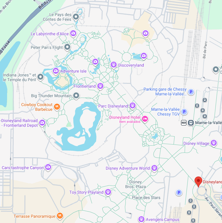 Utilizar a linha RER A até a estação Marne-la-Vallée–Chessy é a escolha mais rápida para evitar o trânsito local. Além disso, a estação está estrategicamente posicionada ao lado da entrada dos parques para facilitar o seu acesso.