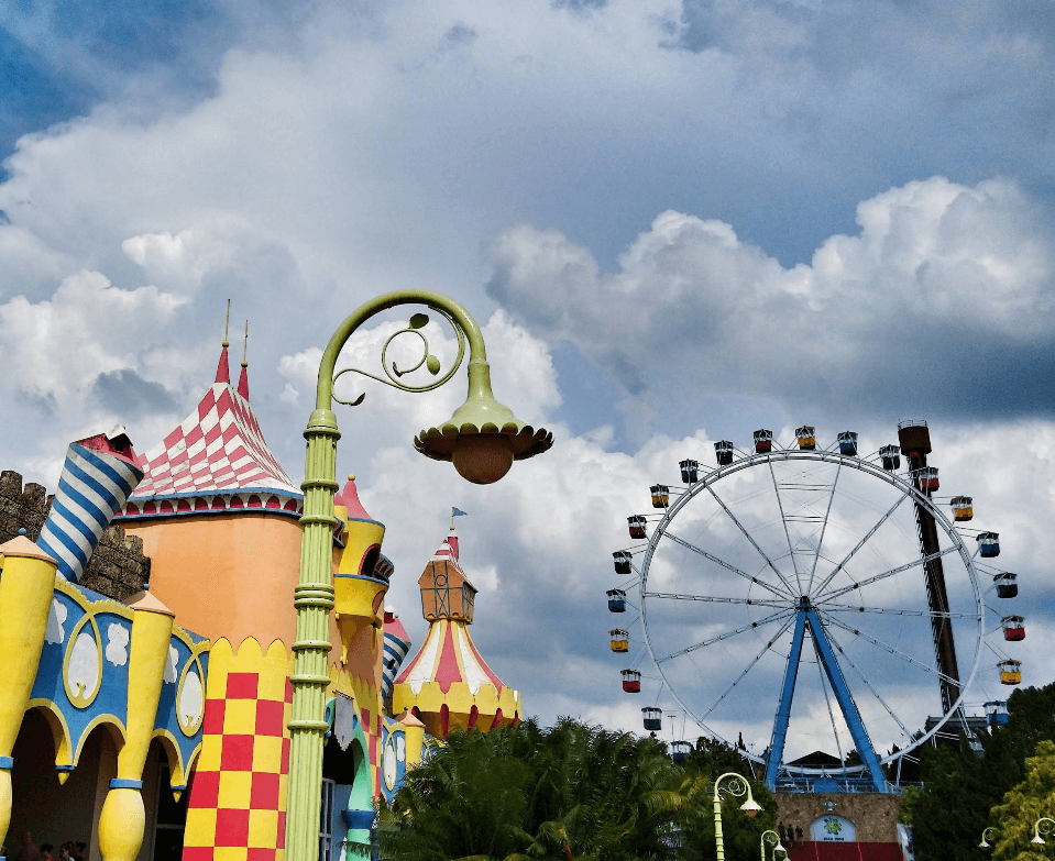 A região de Infantasia concentra o lazer dos pequenos com brinquedos seguros e temáticos, como o Cinétrion e mini montanhas-russas. A Giranda Mundi, icônica roda-gigante do parque, oferece um passeio suave com vista panorâmica para toda a família. O ambiente é planejado para ser lúdico, permitindo que as crianças explorem o “país mais divertido do mundo” com total segurança.