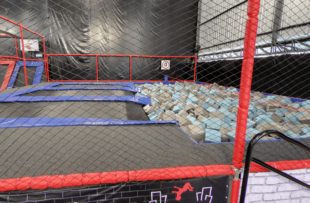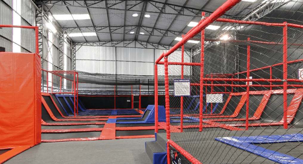Áreas com camas elásticas conectadas onde é possível saltar livremente e praticar acrobacias simples com total segurança.